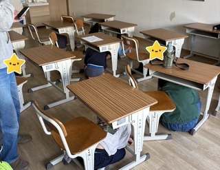 その後、緊急地震速報が鳴ると机やマットの下に入り、自分の身を守る行動をとることができました。