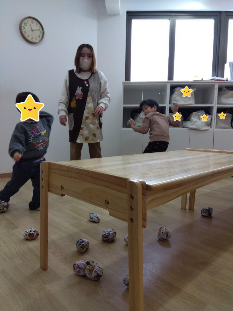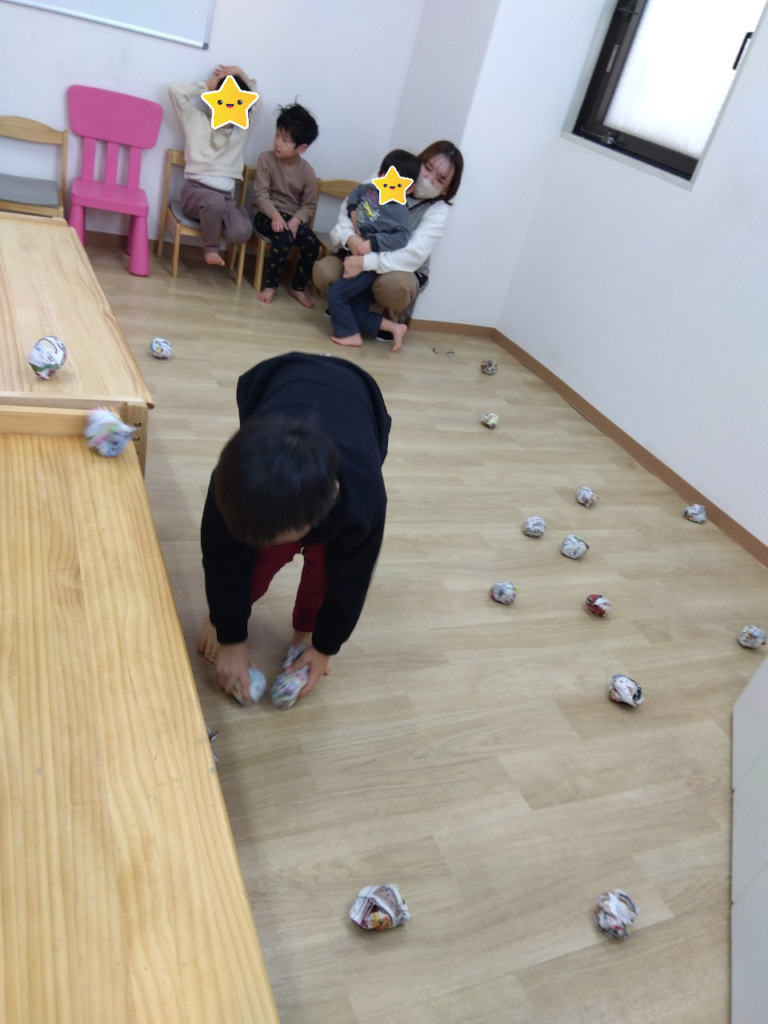 みんなとっても上手に新聞紙雪玉を投げることができたね◎楽しそうな笑顔がたくさん見られて先生たちも嬉しかったよ😊💖