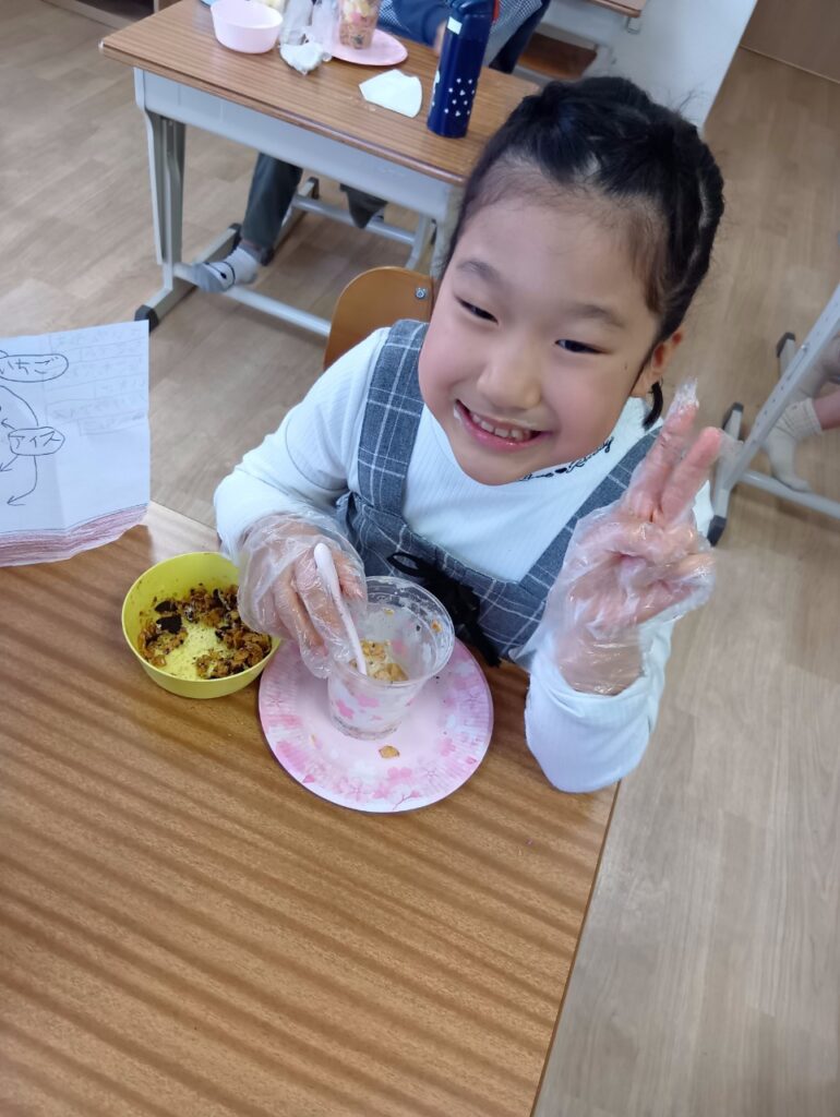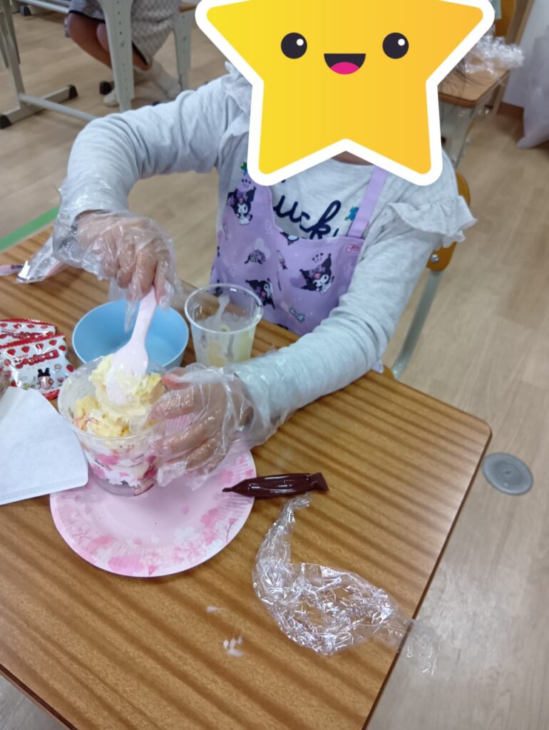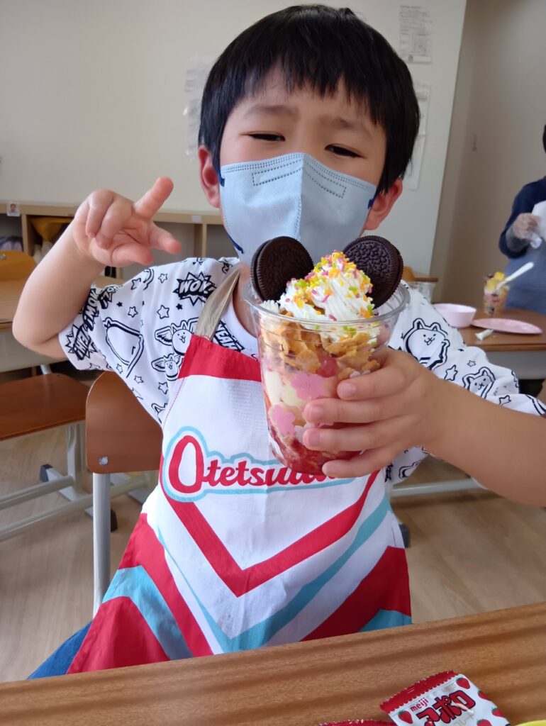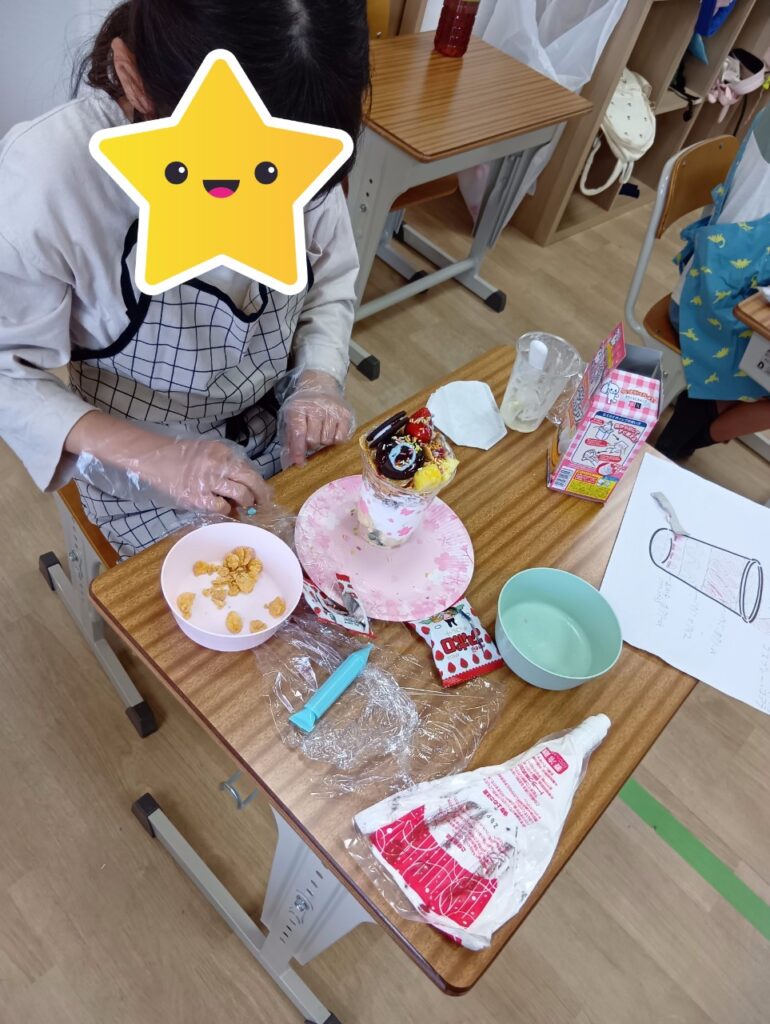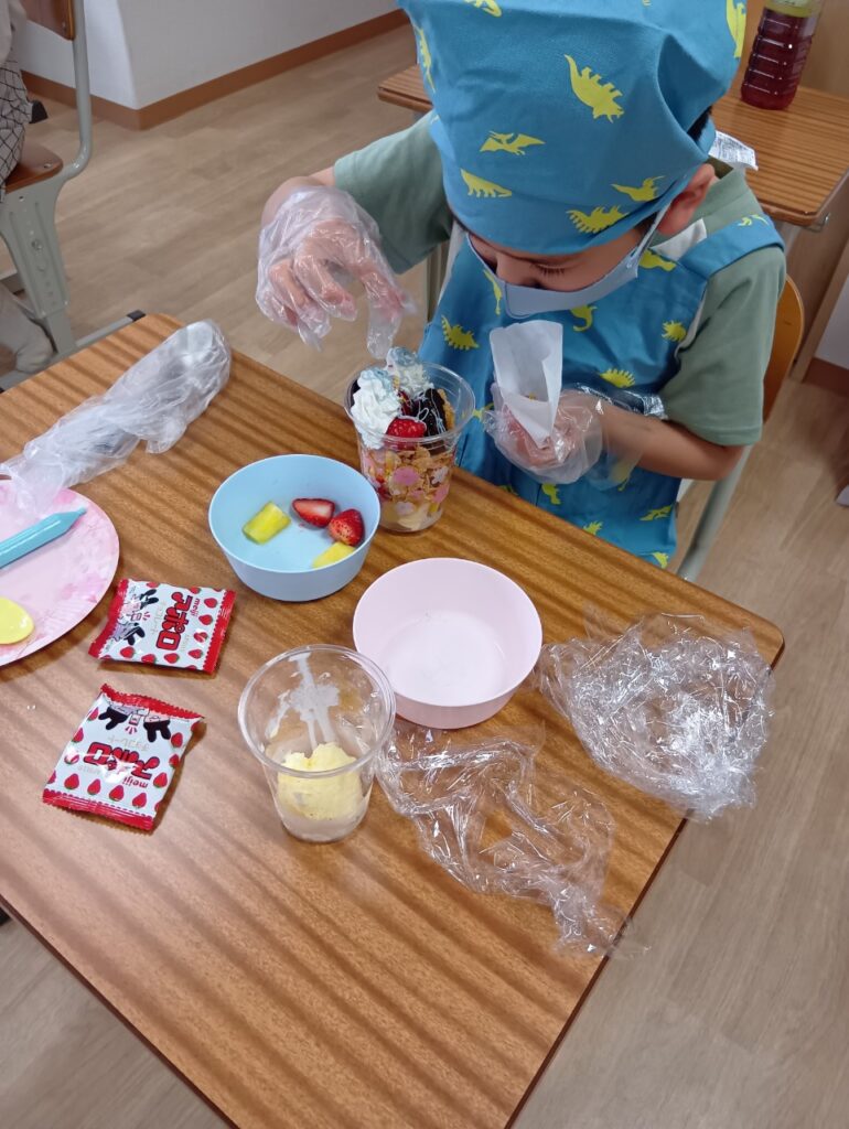 今回は「自分で選ぶ楽しさと責任を知る」をねらいに、パフェ作りを行いました!