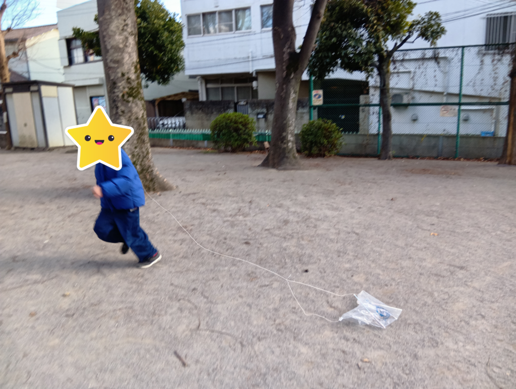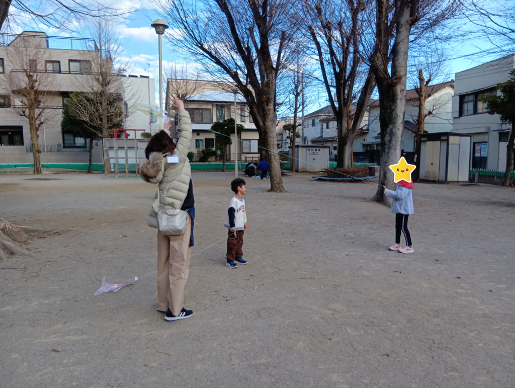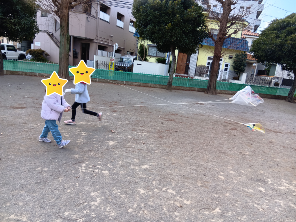 オリジナルの凧を作り、公園へ行って凧あげを楽しみました!